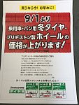 みなさま、こんにちは!! 高山(GOL)です。GOLはゴルです。 学生時代のあだ名がゴルだったので、タイヤ館小諸でも今やゴルです。 そんなことはおいておきまして、冬タイヤが値上がります。 ご存知のお客様もいらっしゃるかもしれませんが、9月1日からとさせていただいております。 まだまだ暑い時期で...