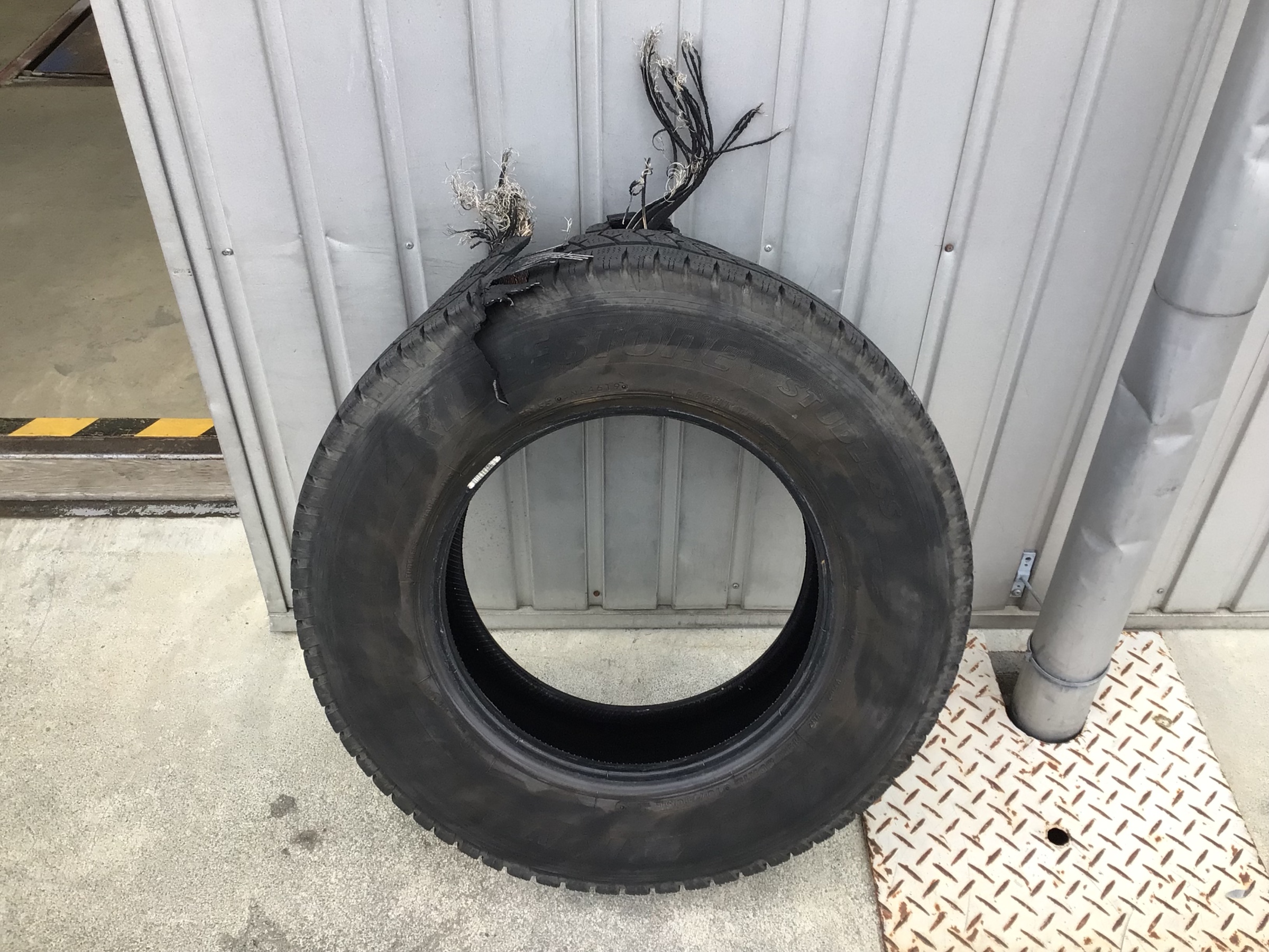 みなさん こんにちは 皆様は、今までタイヤが バーストしてしまった経験はありますか? 先日、バーストしたお客様が来店されました。 タイヤを見ると、 サイドから亀裂が入っているのが分かります。 なぜバーストしてしまったのか 原因は外部からの損傷やタイヤの劣化・空気圧にあります。 走行中縁...