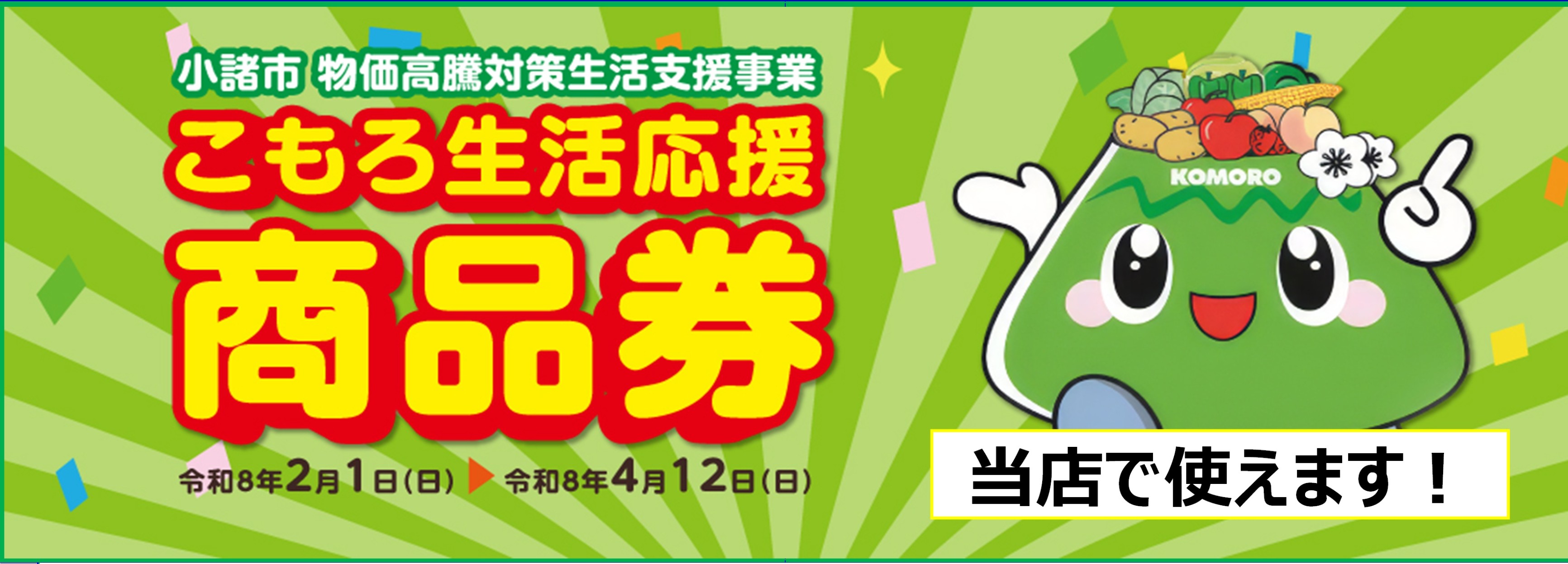 小諸市生活応援商品券500円券も使えます!あと2日間