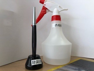 各場所に消毒液も置いてあるので