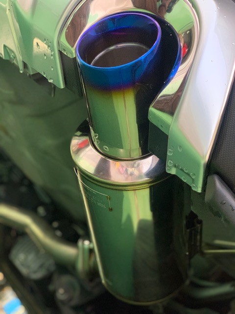 マフラーエンドも、チタン焼き風になり車両を後ろから見た時「お・・・!」となるような見た目となりました!!