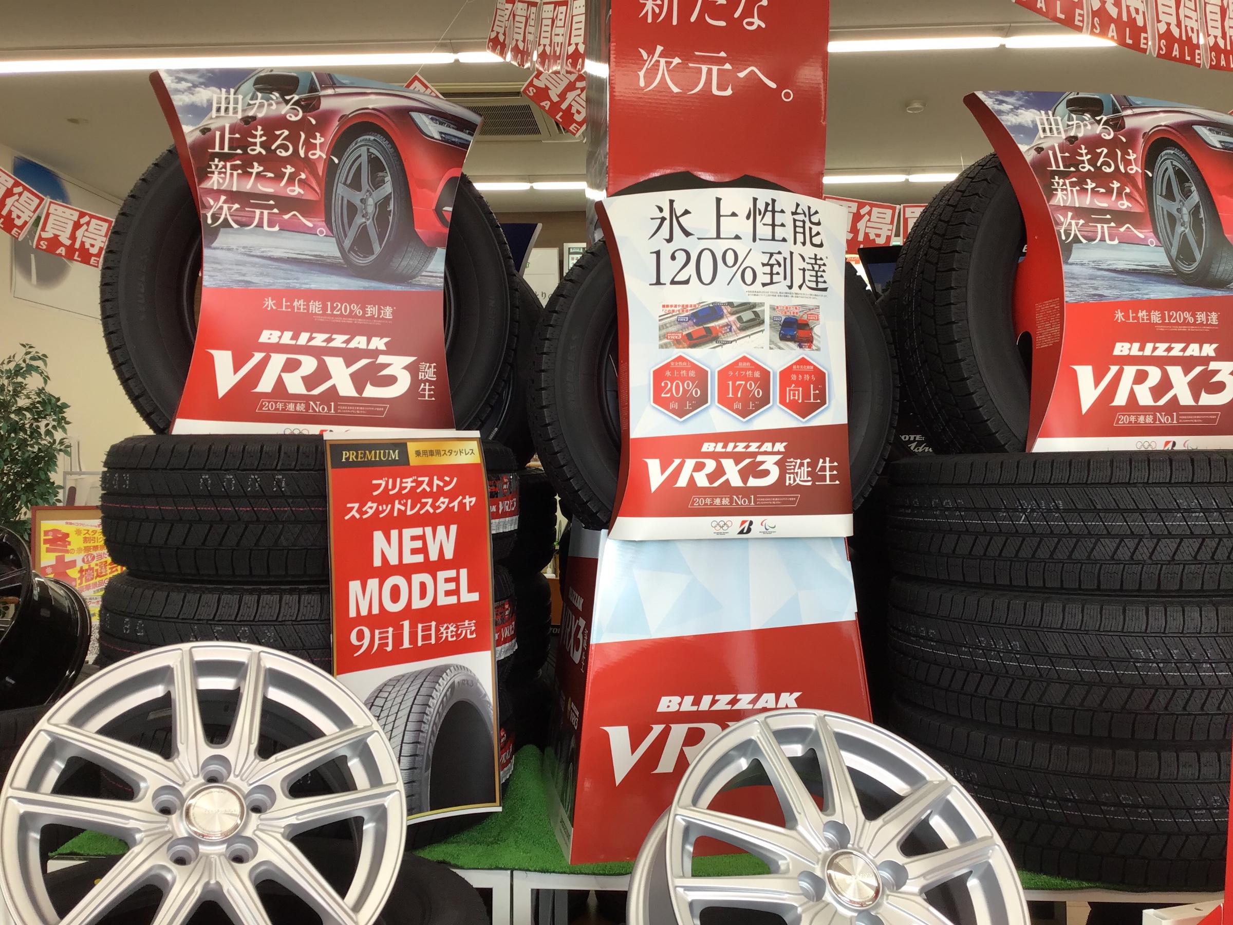 今月から新発売のスタッドレスタイヤ、従来のVRX2より更に氷上性能が向上し、よりゴムの柔らかさが長持ちする「ブリザックVRX3」。