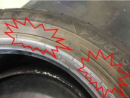 タイヤを確認させていただいたところ、タイヤサイドにひび割れが多数見られました(゜o゜)