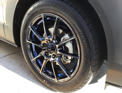 ブラックのホイールにブルーのラインがアクセントになっていて