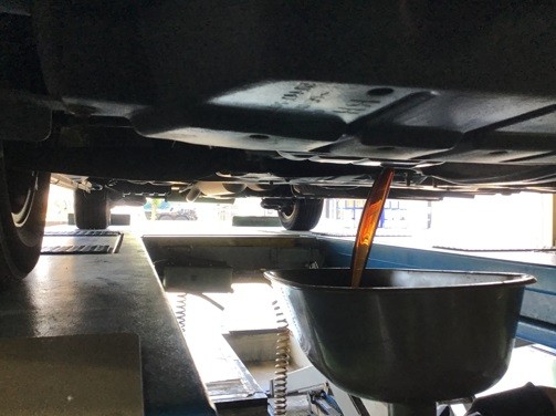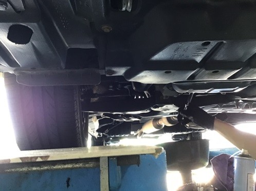 まず、車両をリフトアップさせ古いオイルを抜いていきます