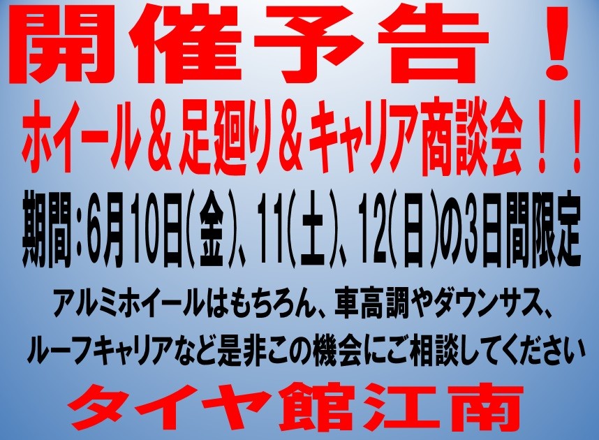 いよいよ今週末から ホイール&足廻り&キャリア商談会 が行われます!!