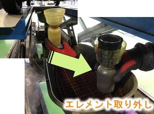 エレメントを丁寧に外したら、新しいものに交換していきます。