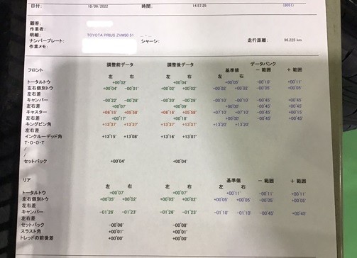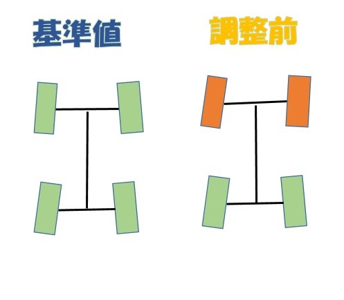 左フロントトウが基準値より少し内側に、右フロントトウが基準値より少し外側にむいていました(゜o゜)