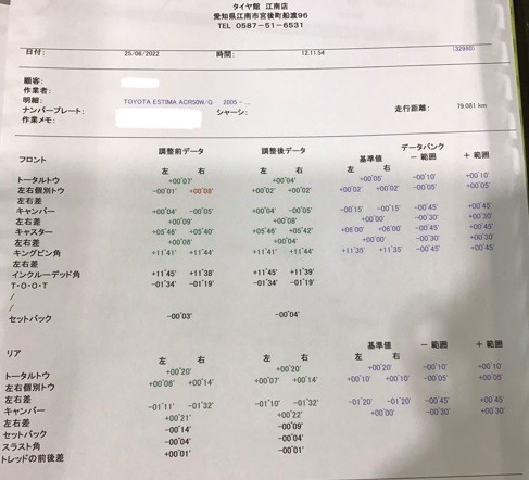 左右トウが基準値よりズレていました(゜o゜)