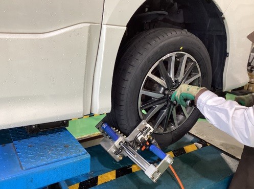 振動を与えながら締め込みをすることで車軸の中心にお取付けします