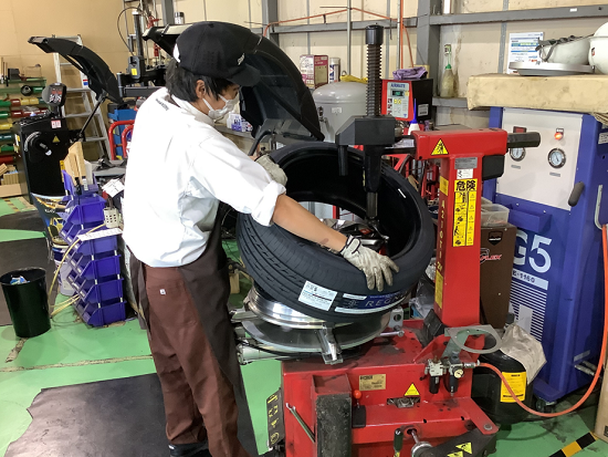 慎重にタイヤを外して組み込みの作業をおこないます。