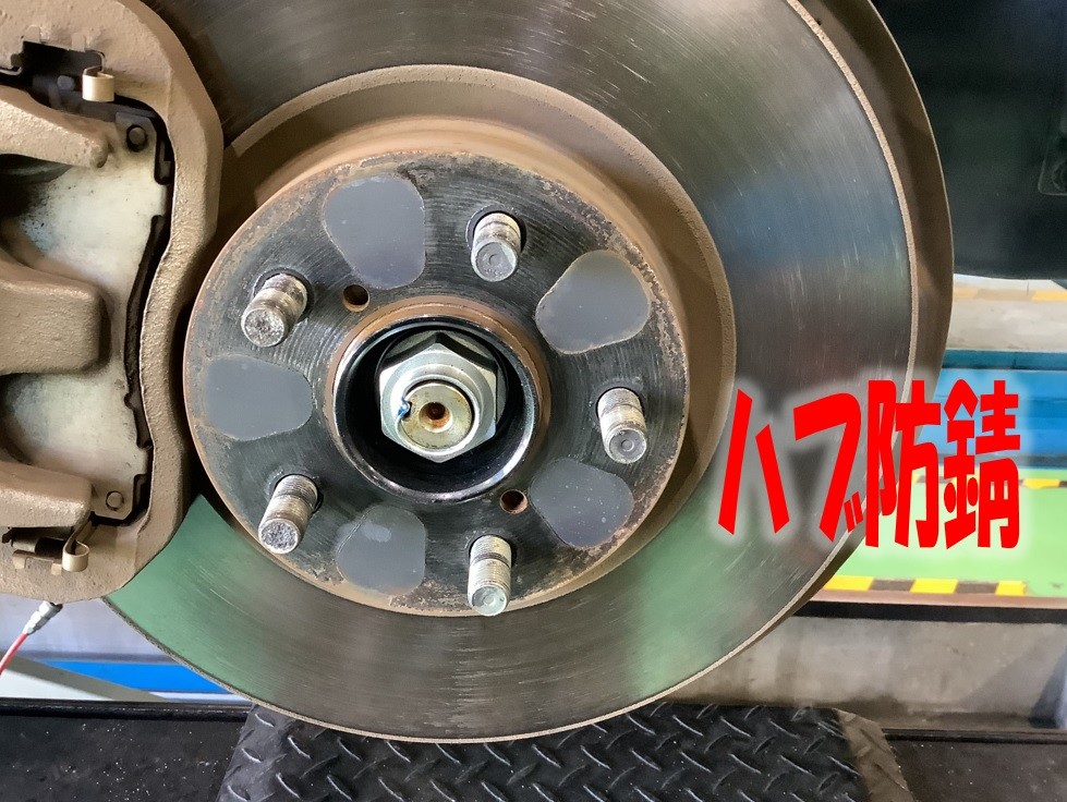 車輛にタイヤを取り付ける前に ハブの部分を磨いて錆止めを塗ります。