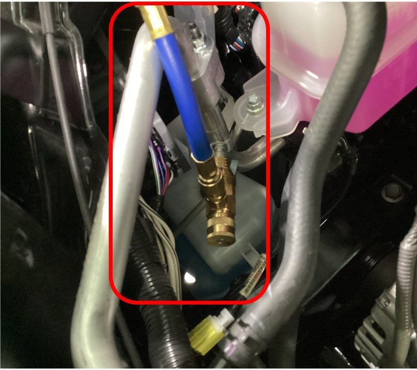 最新のエアコンガスの添加剤充填をさせていただきました。