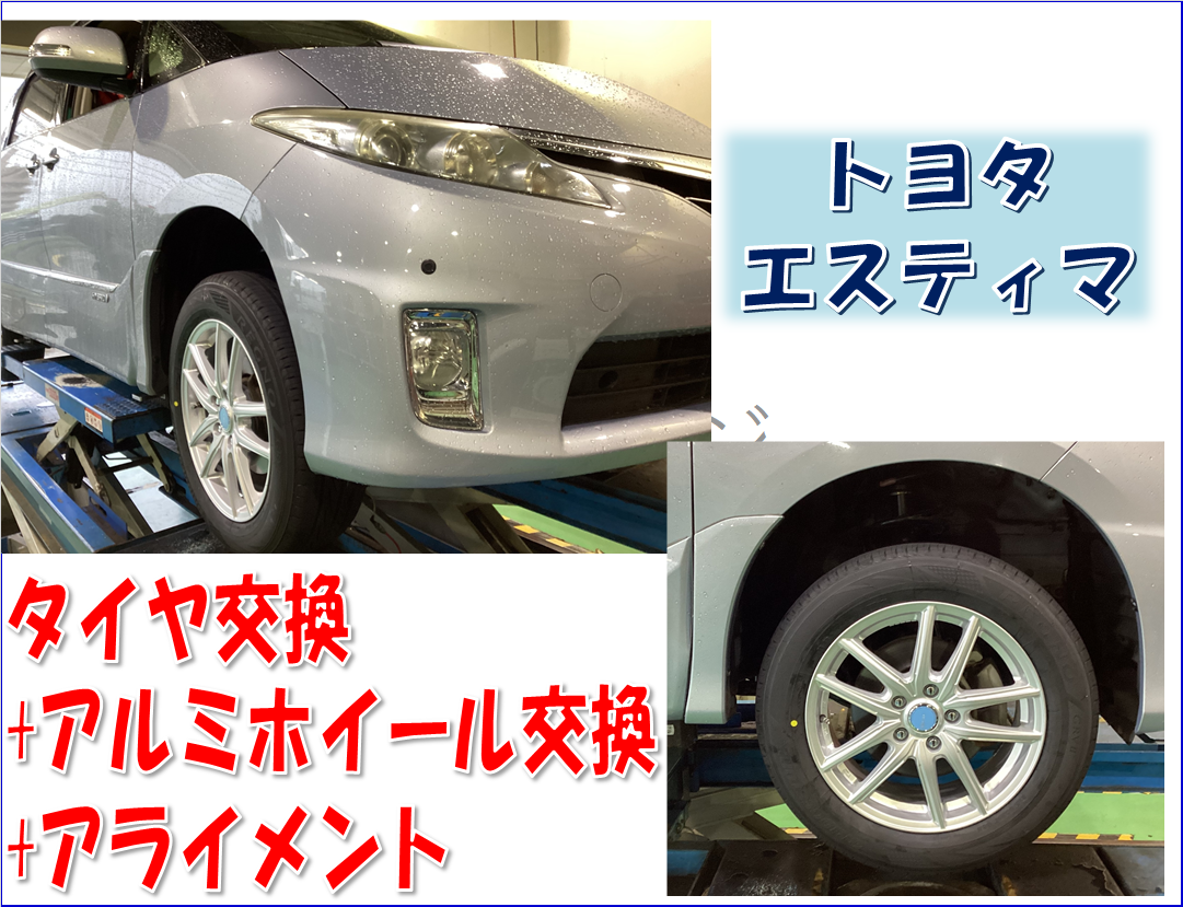 【トヨタ エスティマ ハイブリッド】タイヤ交換&ホイールセット+アライメントです!