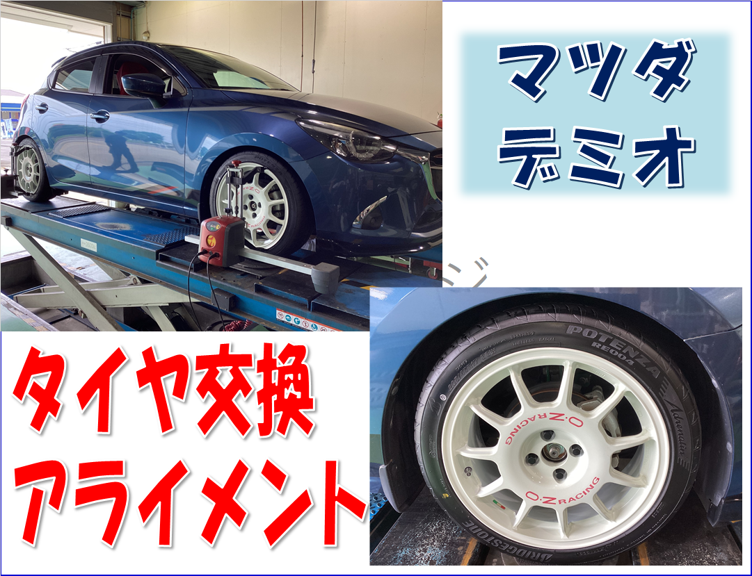 【マツダ デミオ】タイヤ交換&アライメント