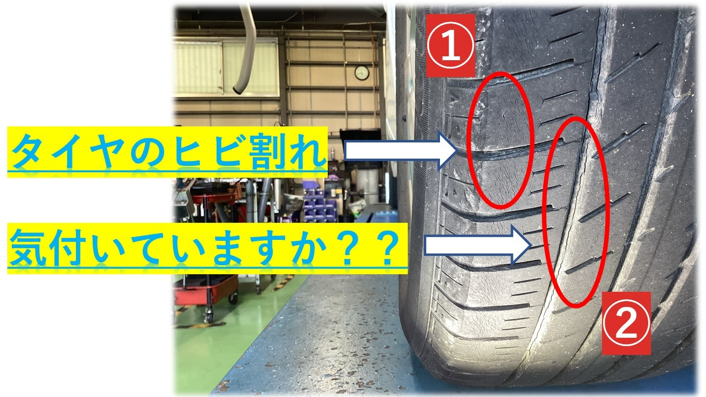もし、おクルマのタイヤに②のヒビがある場合は、
