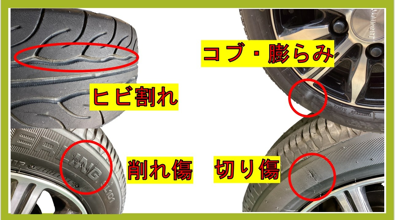 他にも、タイヤが上記画像のような状態になっている場合があります。