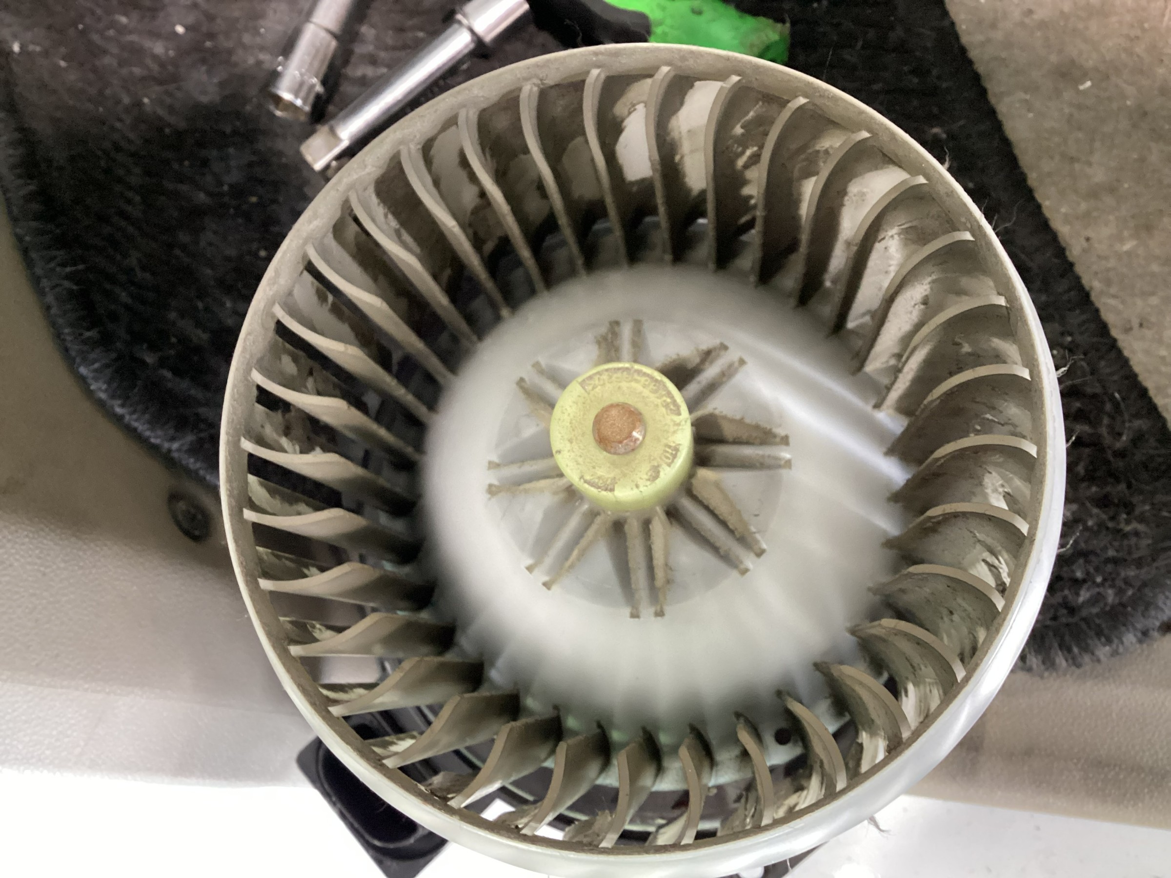 ブロアモーターには、新車からの長年の汚れがびっしりと付着していました。。