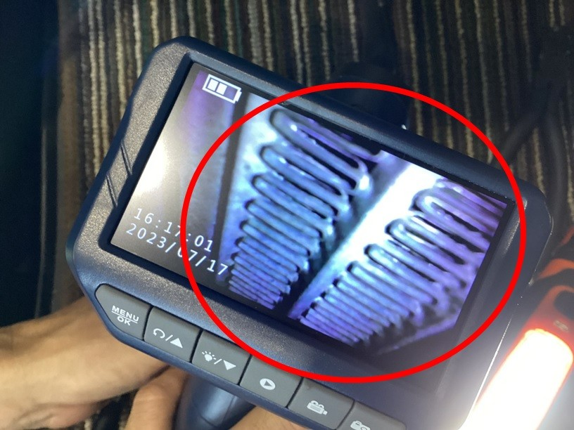 当店ではカメラ付きのノズルをエバポレーターまで差し込んで、