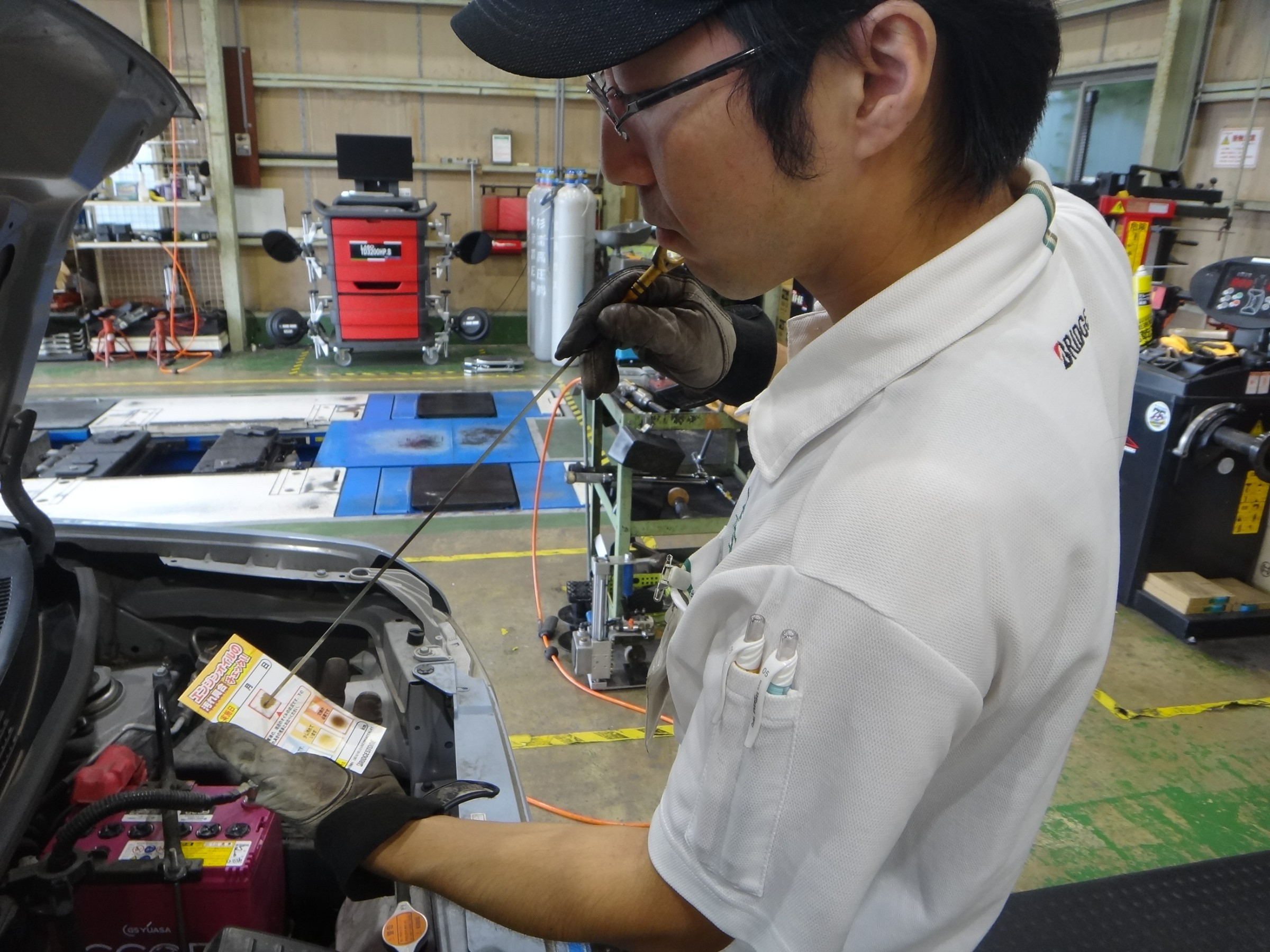 汚れだけでなく油量も確認します。