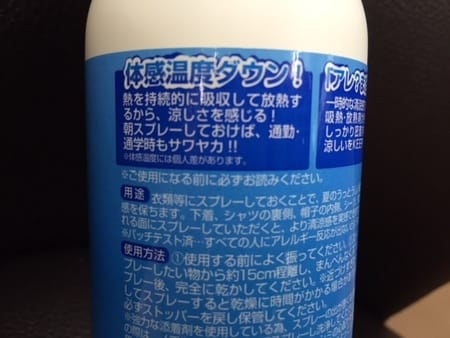 このスプレーをシャツの裏側にしておくことで、熱を持続的に吸収し放熱するので、