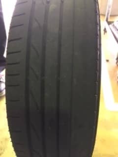 タイヤの写真の右側が偏って減っているのがわかるでしょうか?