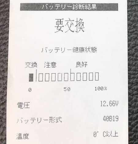 レシートのような診断結果が出てくるので、お客様ご自身にもバッテリーの状態を目で見て確認していただけます。