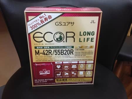右の写真は当店おすすめ「GSユアサ エコRロングライフ」