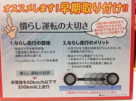 新品タイヤの早期装着には意味があるんですよ!