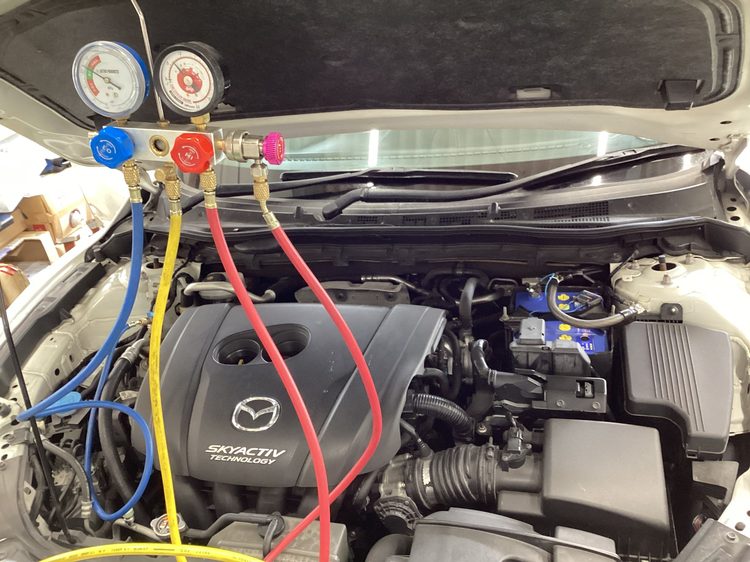現状のガス量をチェックし、車ごとの適切なガス量に調整をします。