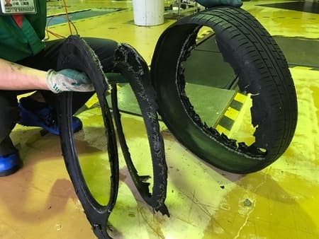 パンクして空気が入っていない状態で走行を続け、