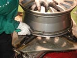 タイヤチェンジャーという専用の機器を使用し交換作業します。