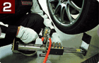 B-SYSTEM(ビーシステム)は専用の機械で特殊振動を与えながらナットを締め付けいく事で、ホイールのセンター車軸の真ん中にジャストフィットさせます。これによりタイヤ・ホイールのスムーズな回転を実現し、車の不快な振動を軽減させます。
