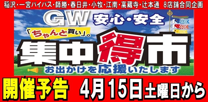 【GWのお出かけを応援!!】ちゃんと買い。集中得市(4/15(土)~)