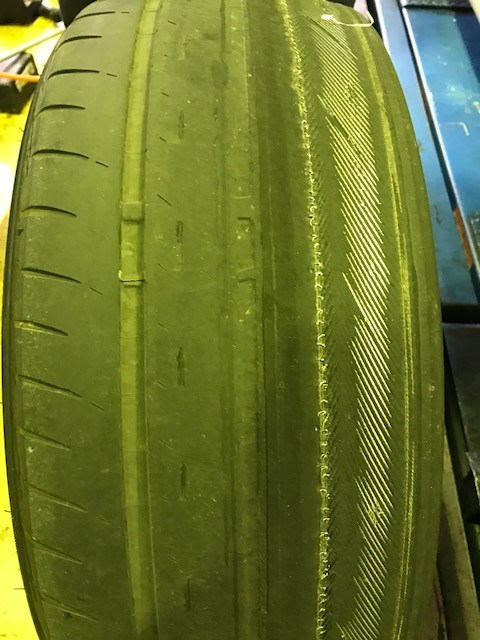 右側のみ、タイヤ内部の金属コードが見えてしまっています・・・