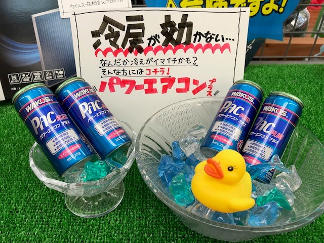 エアコンの冷えがイマイチ…そんな方へ ポスト 2017年6月10日 タイヤ館江南店です。いつもホームページをご覧頂き、ありがとうございます。 「久しぶりにエアコンつけたら冷えがイマイチ…」 そんなお客様には、WAKO’Sパワーエアコンプラス!! ☆燃費の向上 ☆静粛性の向上 ☆冷却能力の向上 が期待できる商品です♪ 暑くなってきてカーエアコンが大活躍するこの季節に、 ぜひ施工してみませんか?? 気になった方は、お気軽に店頭スタッフまで^^