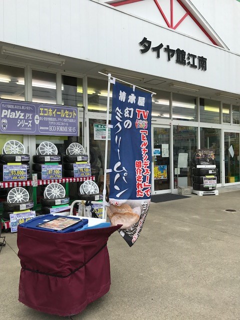 幻の?クリームぱん!! ポスト 2017年7月7日 こんにちは^^タイヤ館江南店です。 先日幻の(?!)生クリームぱんの売り子さんがお店に来てくれました! オススメされるとついついその場で買ってしまう、かなりちょろいタイヤ館江南スタッフたちは・・・ とっても美味しくいただきました!!!!笑 ふわふわでクリームたくさんでほんとに美味しかったですよ~☆ 見かけた際は、皆様もぜひ「幻の味」を体験してみてくださいね^^b 担当:はらた