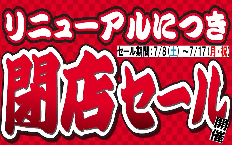 現在、「リニューアルに伴う閉店セール」開催中です!