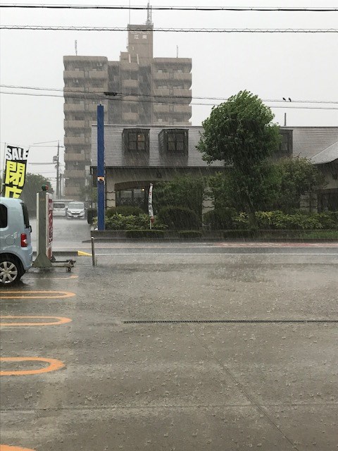 お店の前の道路も、車が通るたびに飛沫があがってます・・・