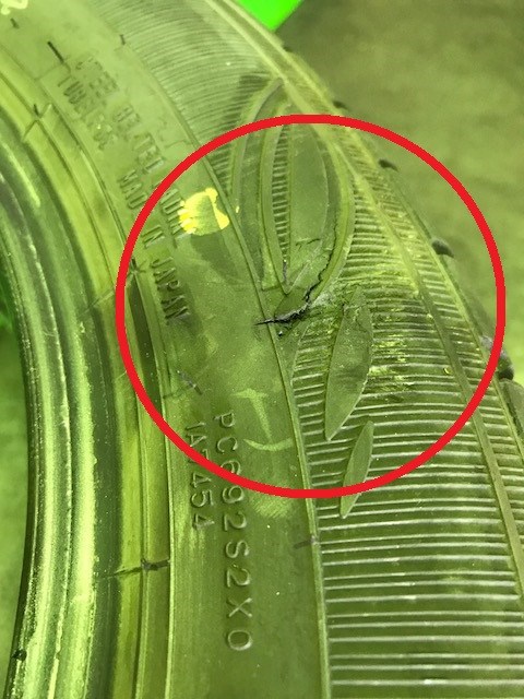 一見なにも問題なさそうなタイヤですが、〇で囲まれた部分をよ~く見ると・・・