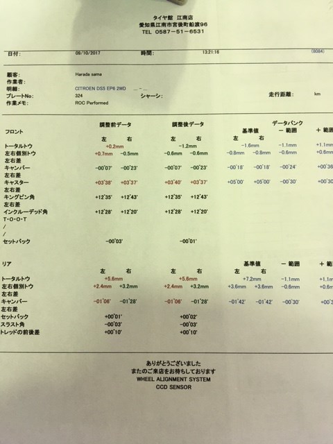 アライメント作業はそこまで狂ってはいなかったものの作業はして良かったと思う数値でした。