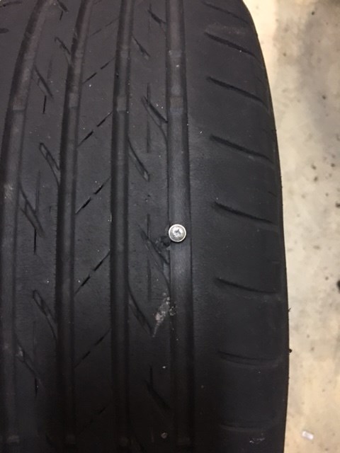 タイヤの溝に釘が刺さっていてタイヤがダメになってしまいました。