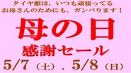 セールお礼&5/7(土)・8(日)母の日イベント予告 ポスト 2016年5月6日 こんにちは!タイヤ館江南です。HPをご覧いただきありがとうございます。昨日までのセール「GWお出掛け応援フェア」にご来店いただいた皆様、誠にありがとうございました!次回のセールのお知らせも、当HPで順次更新しますので今後も情報をお見逃しなく♪明日7日(土)、8日(日)は母の日感謝イベントを実施します。いつも頑張っているお母さんにプレゼントご準備しております!ぜひお立ち寄りください。ご来店をお待ちしております! カテゴリ:お知らせ