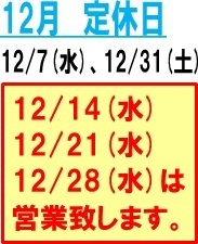 12月定休日のお知らせです ポスト 2016年12月1日 12月定休日のお知らせです!12月は7日(水)、31日(土) を定休日とさせていただきます。よろしくお願い致します。 早めのスタッドレスへの履き替えオススメ致します。 カテゴリ:お知らせ