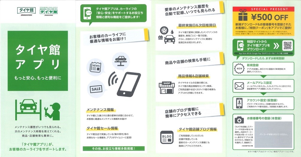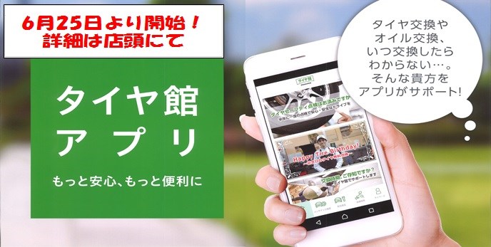 タイヤ館アプリ ポスト 2018年6月26日 皆様 携帯電話はもちろんお持ちだとは思いますが、 タイヤ館からスマートフォン対応の新しいアプリが誕生しました! 「次いつオイル交換すればよい??」 「前回いつ空気圧診たっけ??」 などなどいつでもスマホで確認できます^^ 本登録は店舗にて発行のバーコードラベルが必要ですので、ぜひ店頭にてご確認ください。 愛車の記録をいつでも確認できるのは、うれしいですよね~。 スマートフォンをお持ちの方は、ぜひぜひタイヤ館アプリ インストールしてみませんか?! カテゴリ:お知らせ