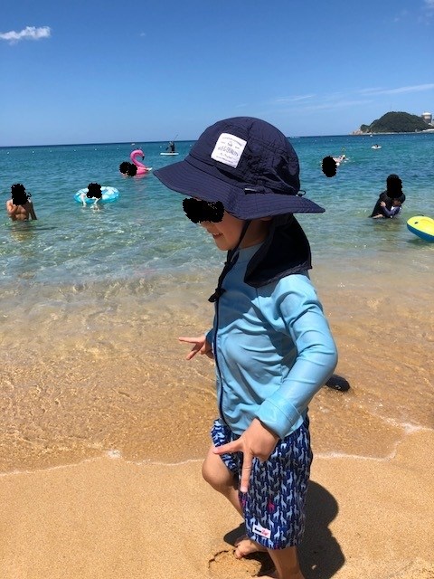 砂で遊んだり浮き輪で泳いだり魚、カニ捕まえたり