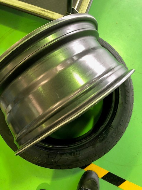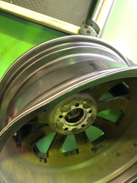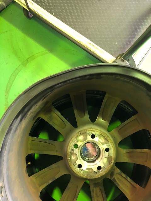 今日はタイヤ交換をしました。タイヤ交換作業中にホイールの曲がりを発見!!!