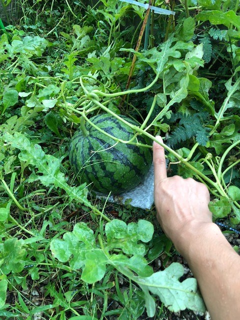 気付いたのは今年の夏だと思うのですが、すくすくとつるのようなものが伸びてくな~と思っていたら、庭にスイカが育っちゃいました。笑