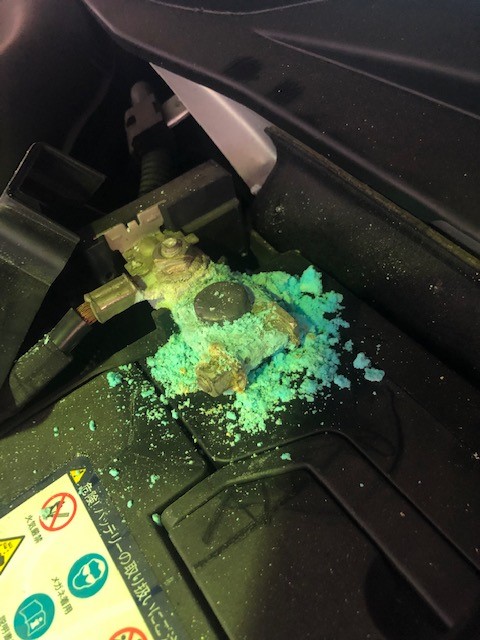 バッテリーのプラス端子が謎の青い粉まみれになっていましたΣ(・ω・ノ)ノ!