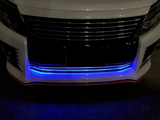 フロントバンパーグリルに張り付けでLED自体はメッキモールで隠れているので、